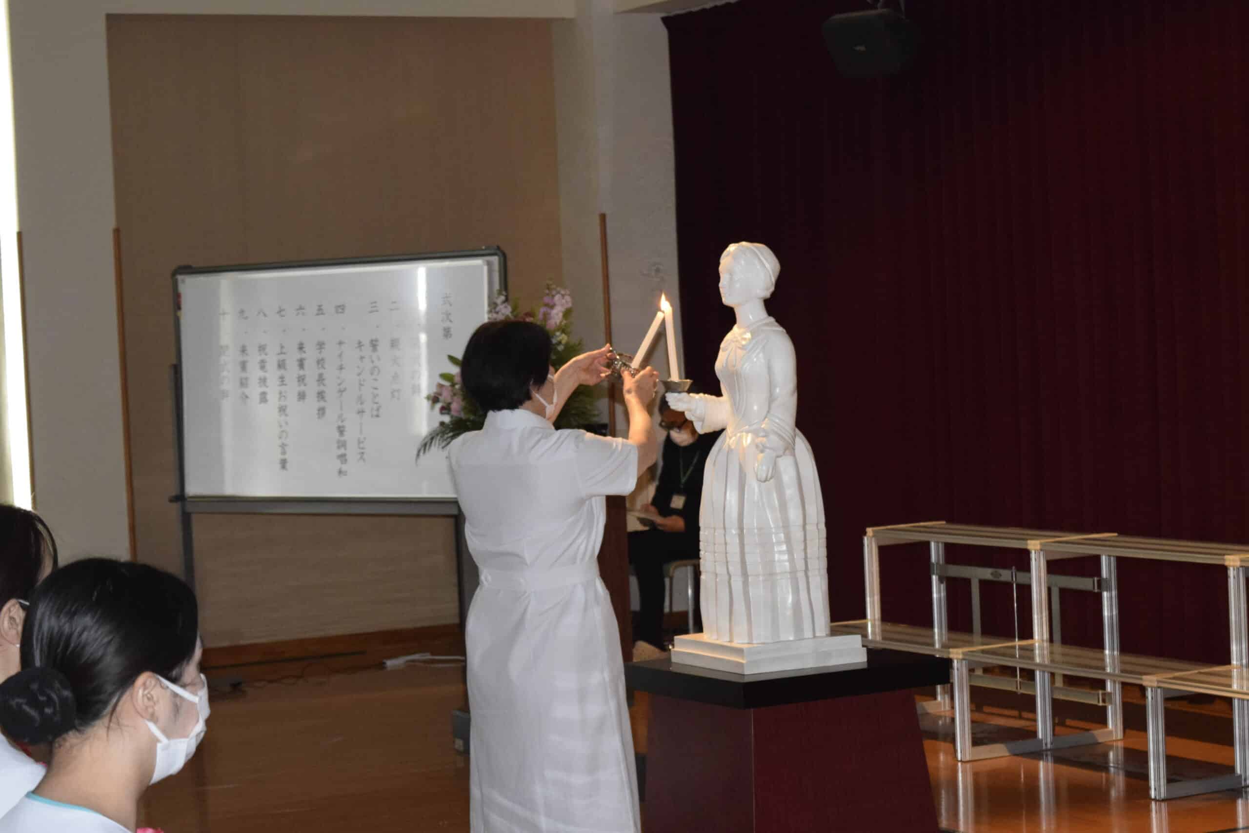 ナイチンゲール像のキャンドルに灯された火を受け取り、1年生全員で宣誓するナイチンゲール誓詞は非常に厳かでとても感動します🥲